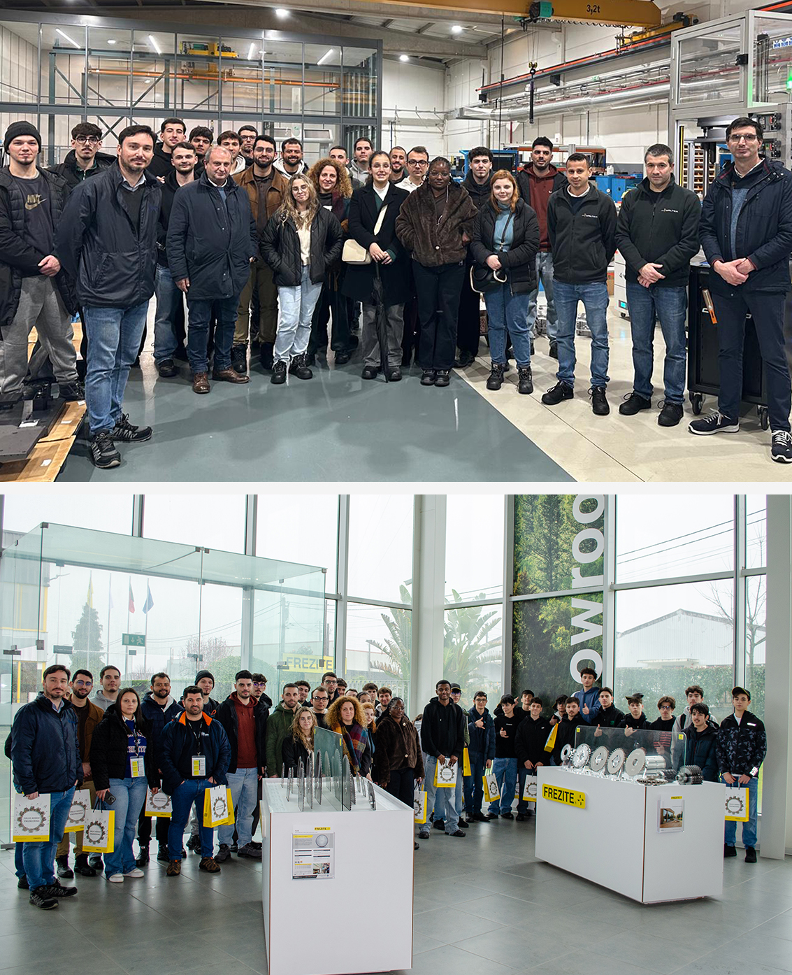 As part of the metalworking curriculum, on 10 February, FREZITE and SERI welcomed 45 students from the CNC Programming and Machining and Mechanical Construction Design courses at CENFIM's – Portuguese Professional Training Centre for the Metallurgical and Metalworking Industry – Trofa Centre. During the morning, the students visited the production units in Trofa, learning about the development and manufacturing processes for high-precision tools. In the afternoon, the visit continued at SERI, where they learned about customised clamping systems, produced on a turnkey basis. The fact that several FREZITE Group employees began their training at CENFIM reinforces the value of technical training and the role of these companies in creating professional development opportunities. The visits also highlighted the technological evolution of the sector and the decisive contribution of the metallurgy and metalworking industry to the economy and innovation.